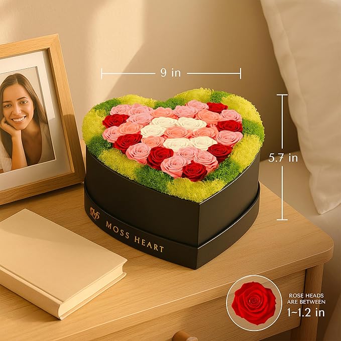 Delicate blush, romantic rose, and bold hot pink come together in this heart-shaped arrangement of 30 preserved roses. Each shade tells a story—of admiration, devotion, and the deep emotions that words alone cannot express. Whether given in love or gratitude, this luxurious display is a timeless keepsake of affection.