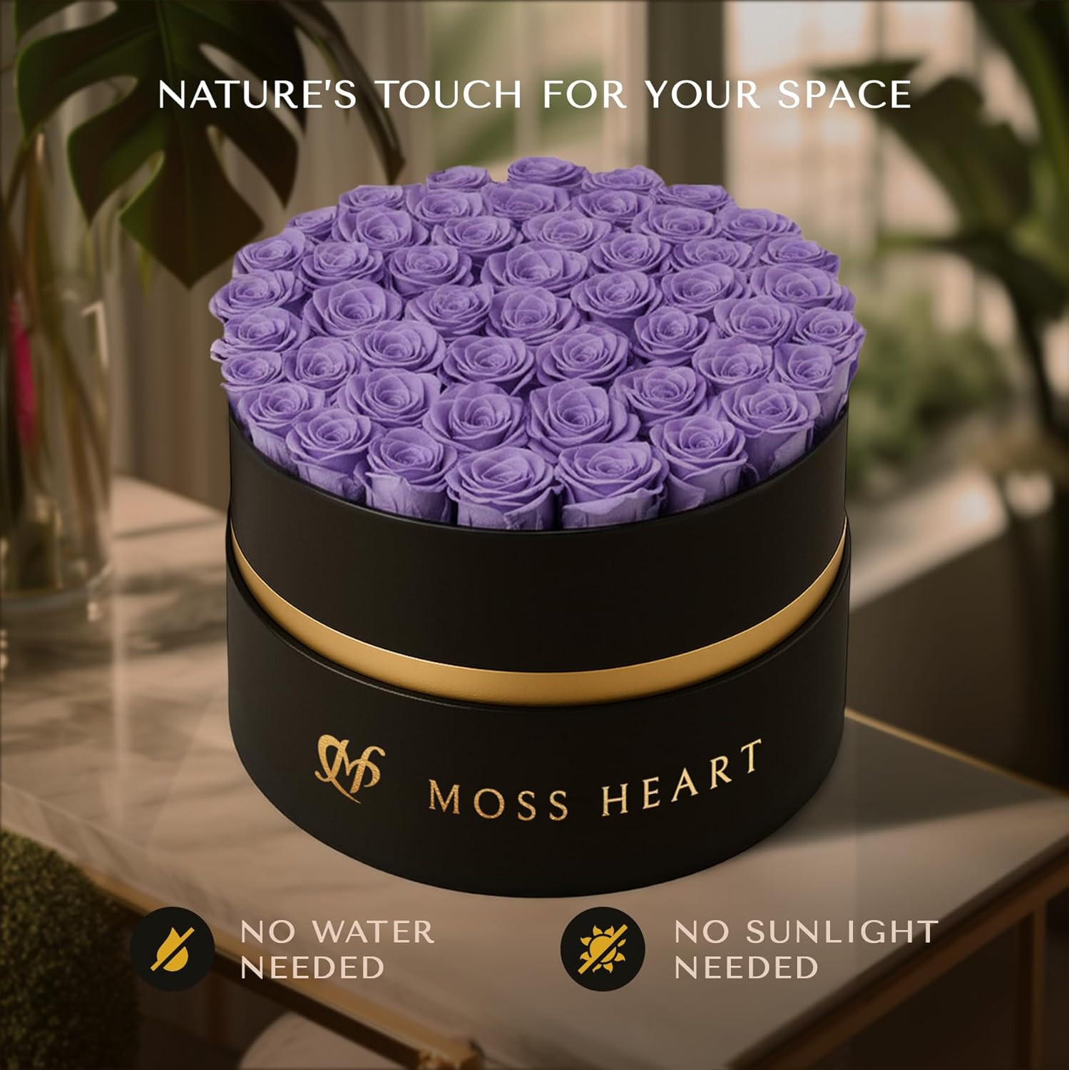 Each rose is meticulously preserved at peak bloom to retain its lush texture, rich purple hue, and soft, natural fragrance. No watering, no maintenance—just effortless beauty for over a year.