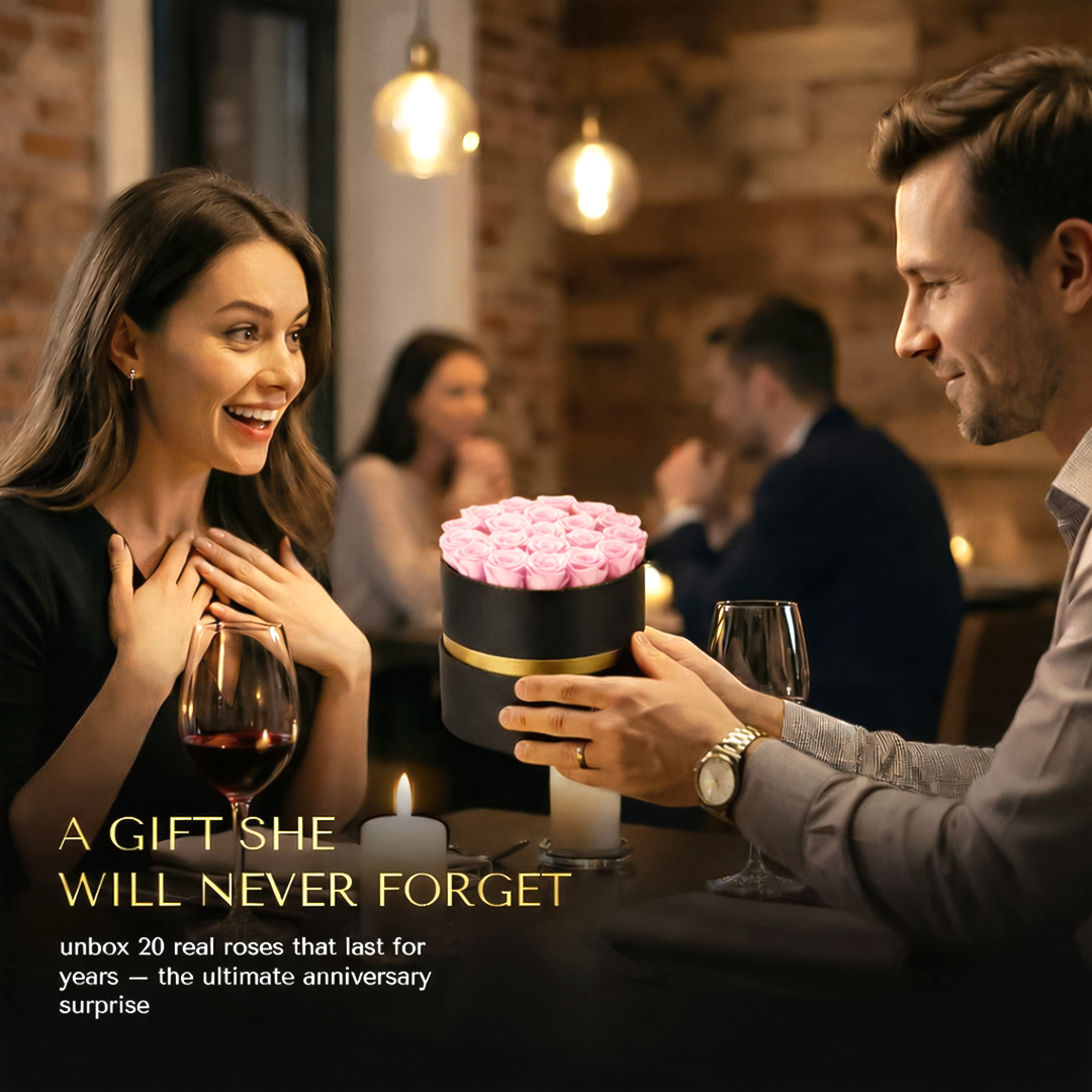 Each rose is hand-selected at peak bloom and preserved to hold its natural beauty for over a year. Soft to the touch. Lightly scented. No watering. No wilting. Just enduring elegance.