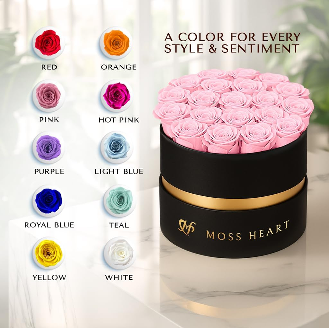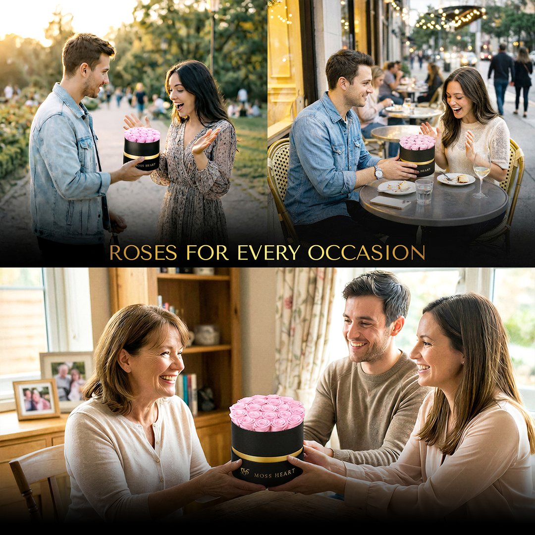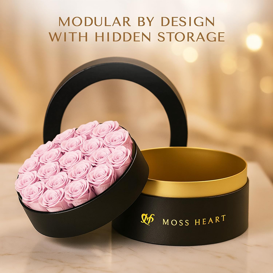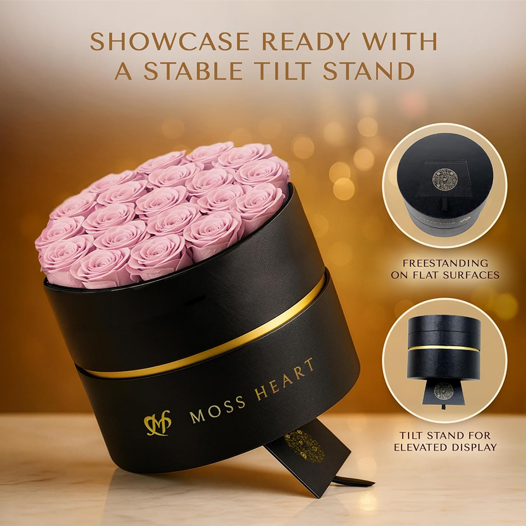 Arranged in a modern round luxury box, these forever flowers are designed for easy display and effortless grace — anywhere, anytime.